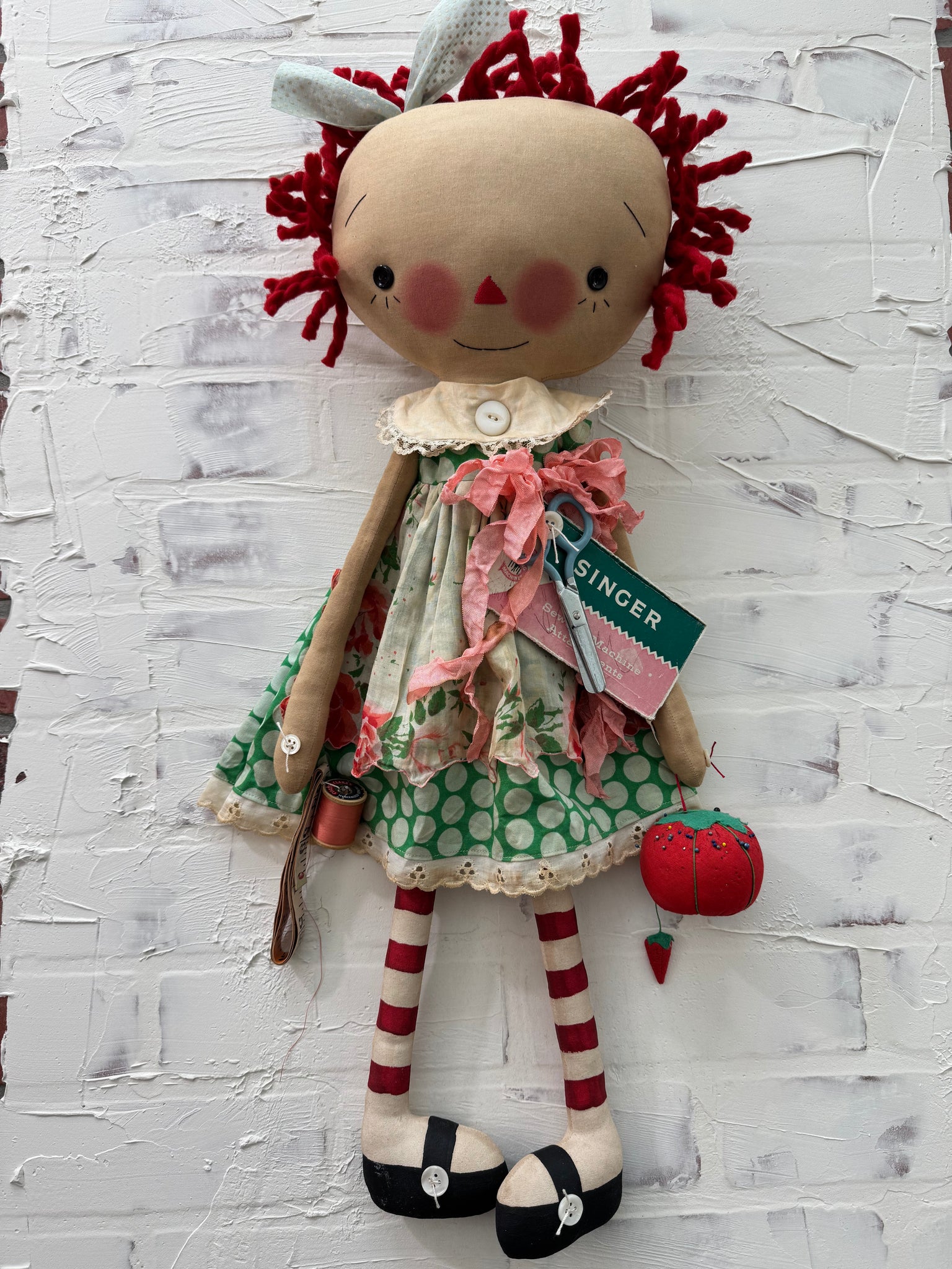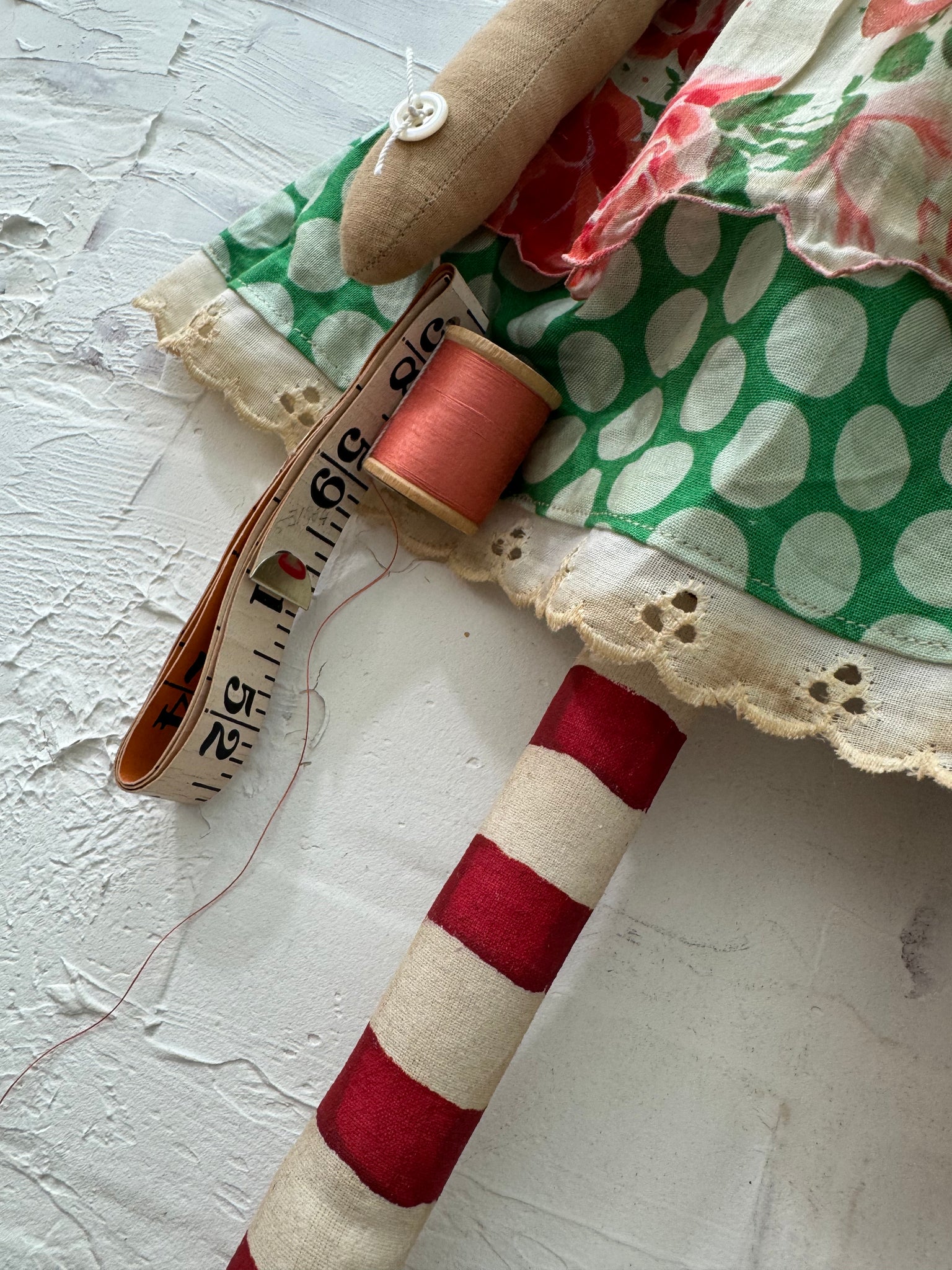 Her face is all handstitched and small black buttons for eyes.