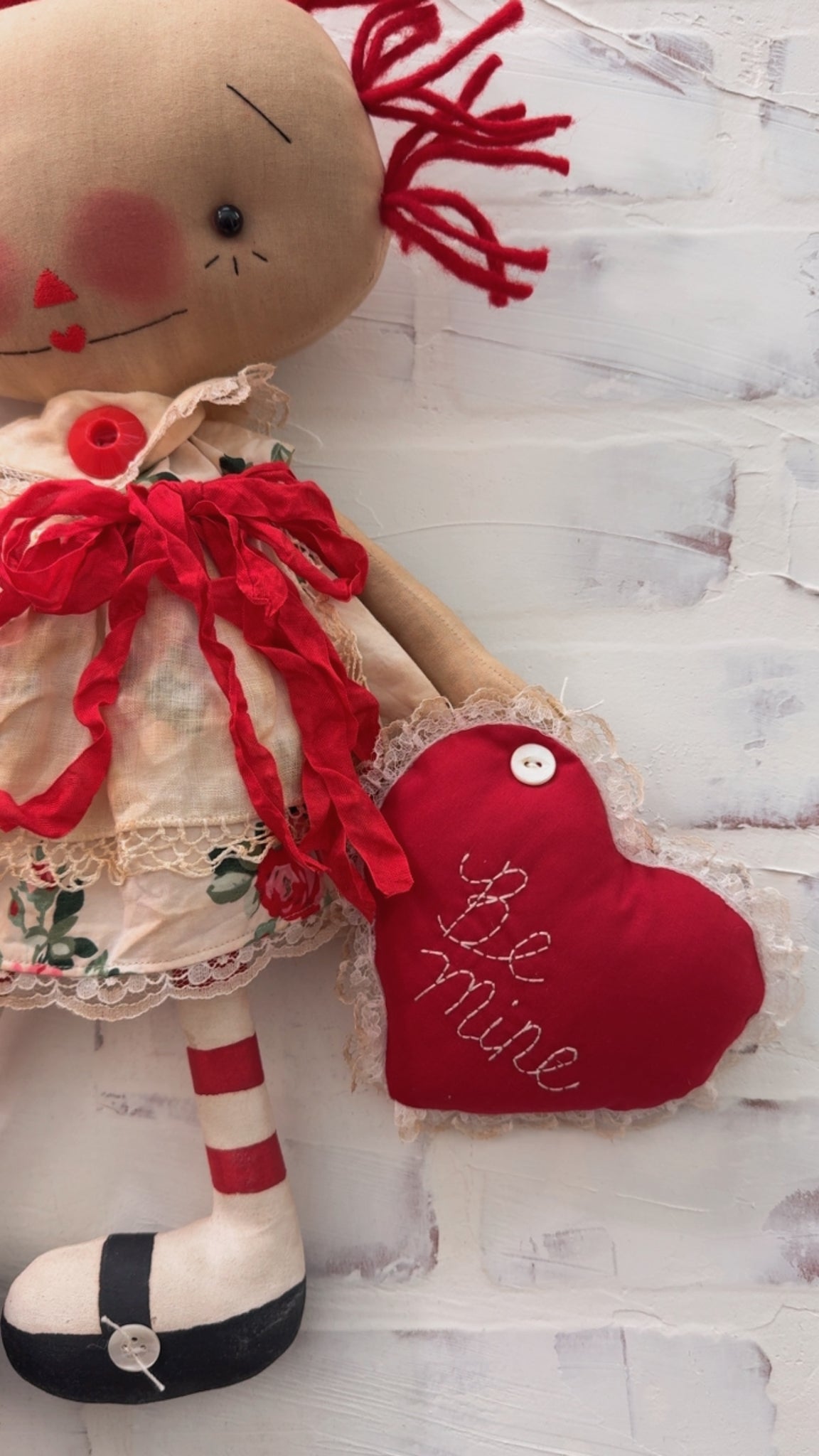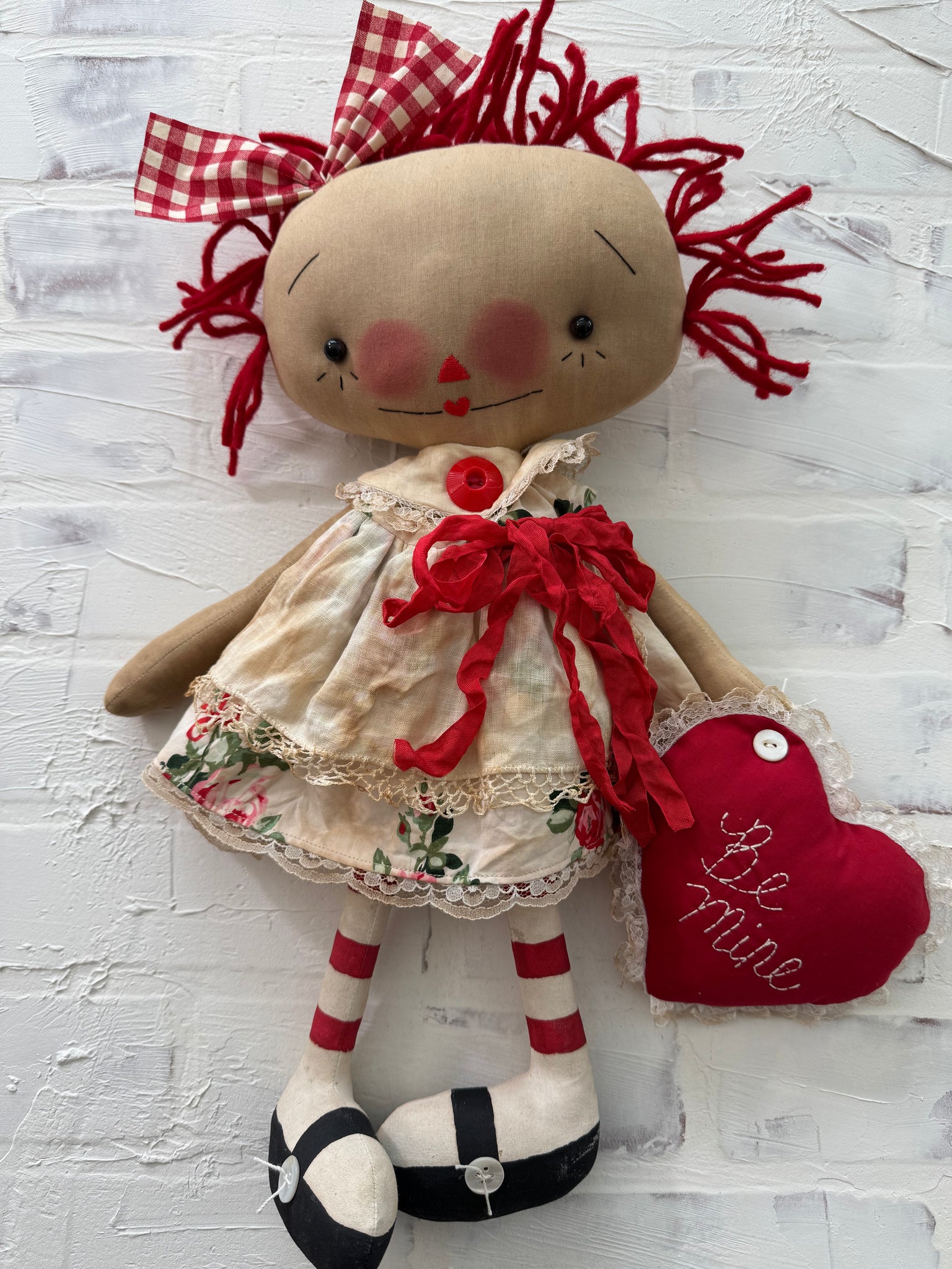 Her face is all handstitched and small black buttons for eyes.